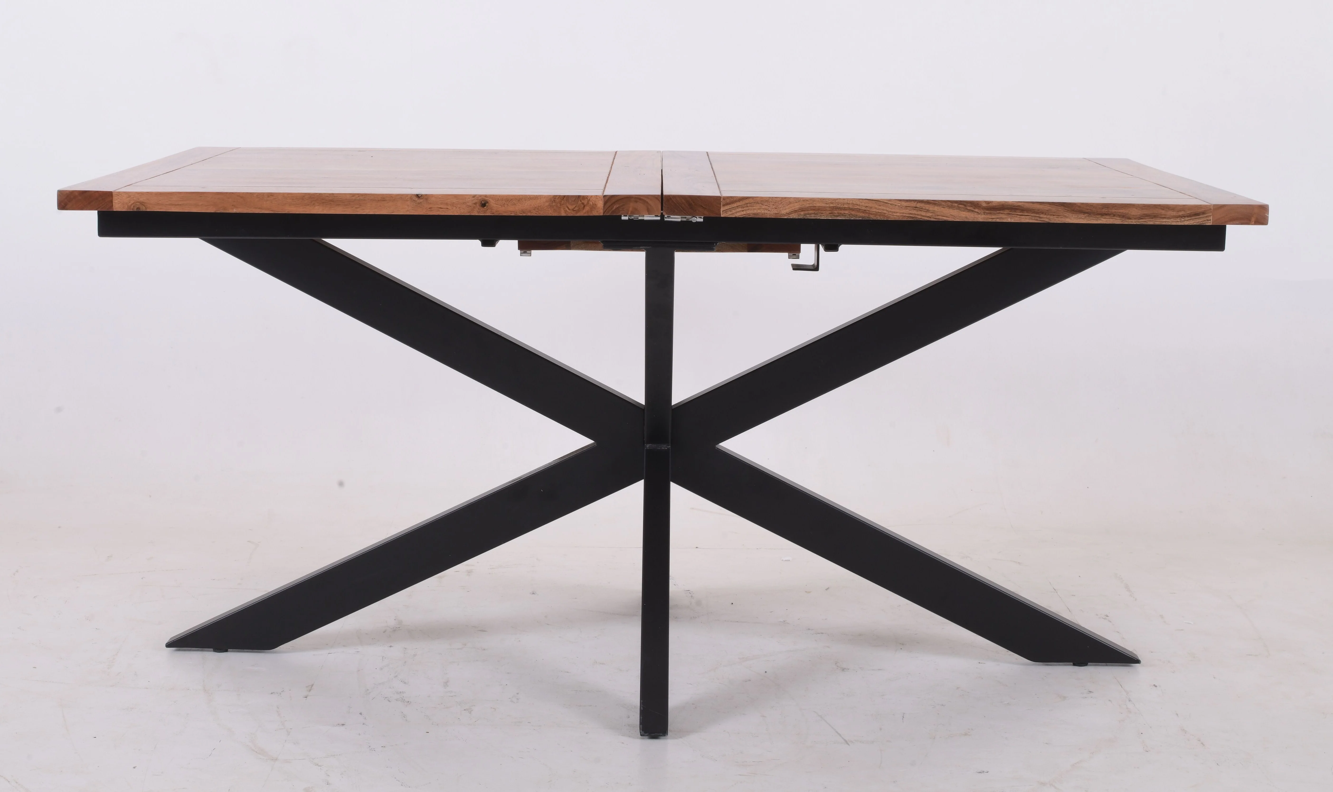 Extendable Acacia Wood Dining Table – Industrial X-Leg 160–200 cm