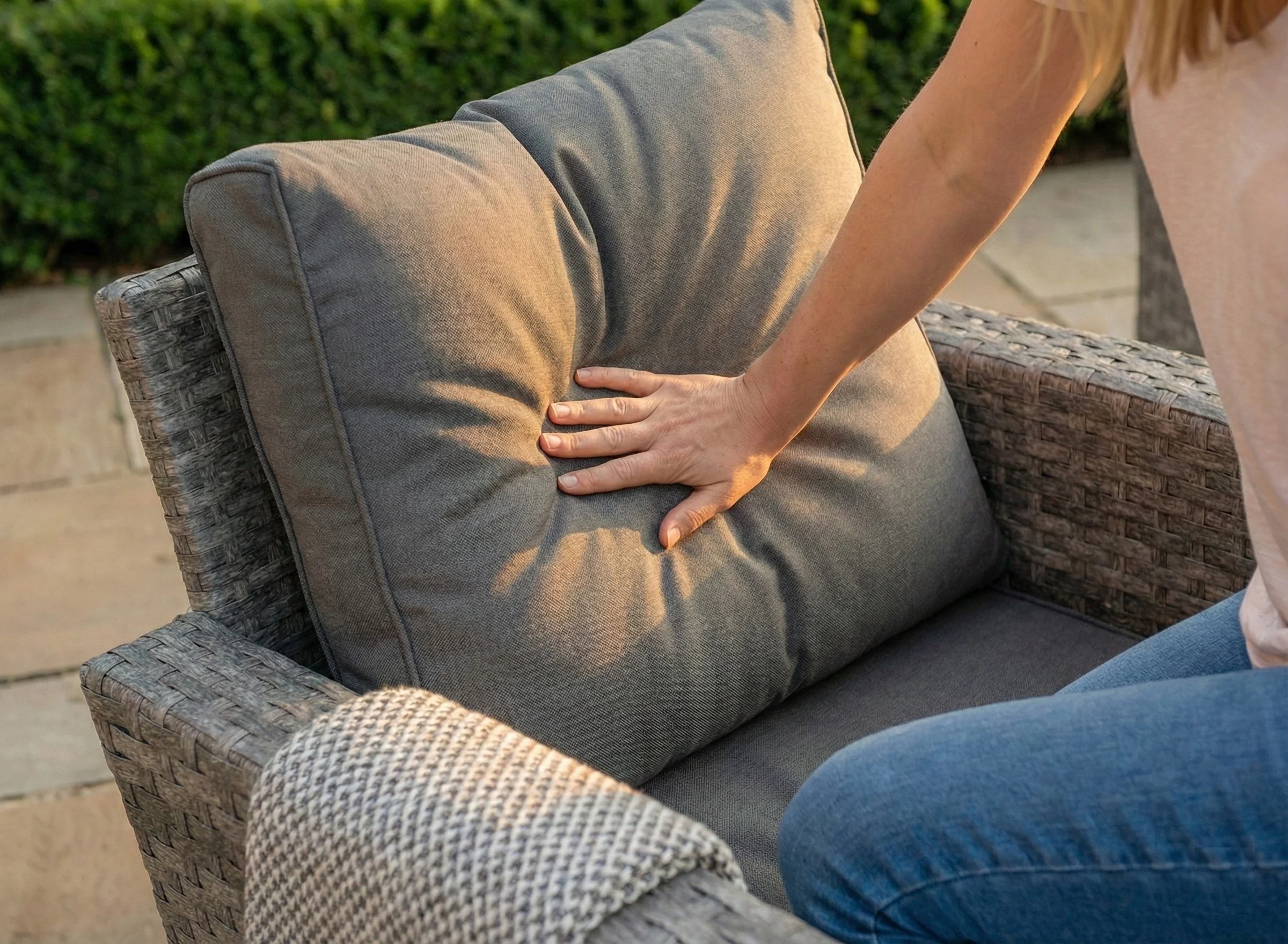Cushion Care: While the rattan is weatherproof, we recommend storing the cushions indoors or in a dry cushion box during heavy rain or over winter to keep them looking pristine.