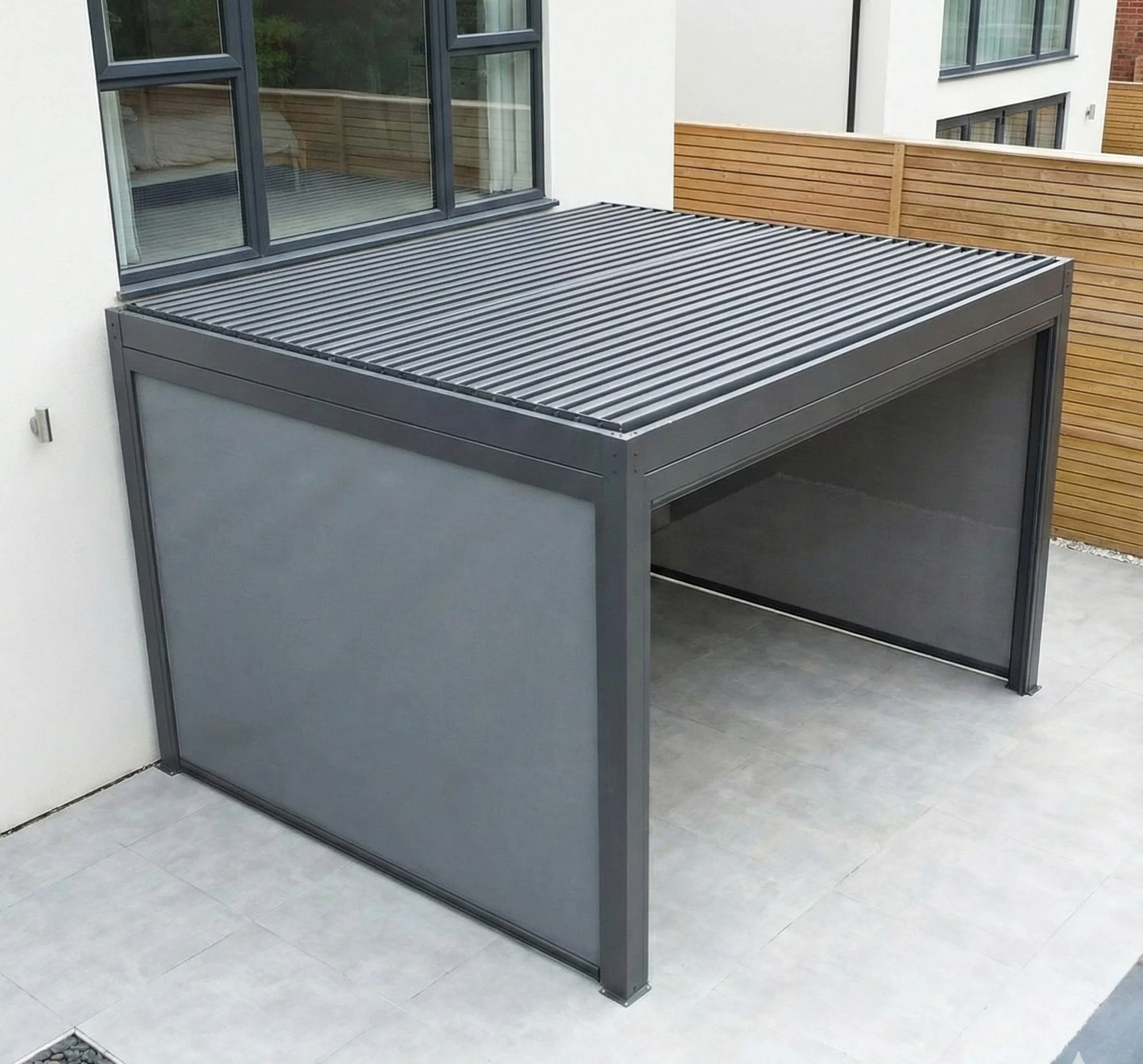 ✔ Adjustable Double-Louvred Motorised Roof – offers better ventilation, increased rain and wind protection, improved durability, and a more stylish, versatile design compared to single-louvred roofs.